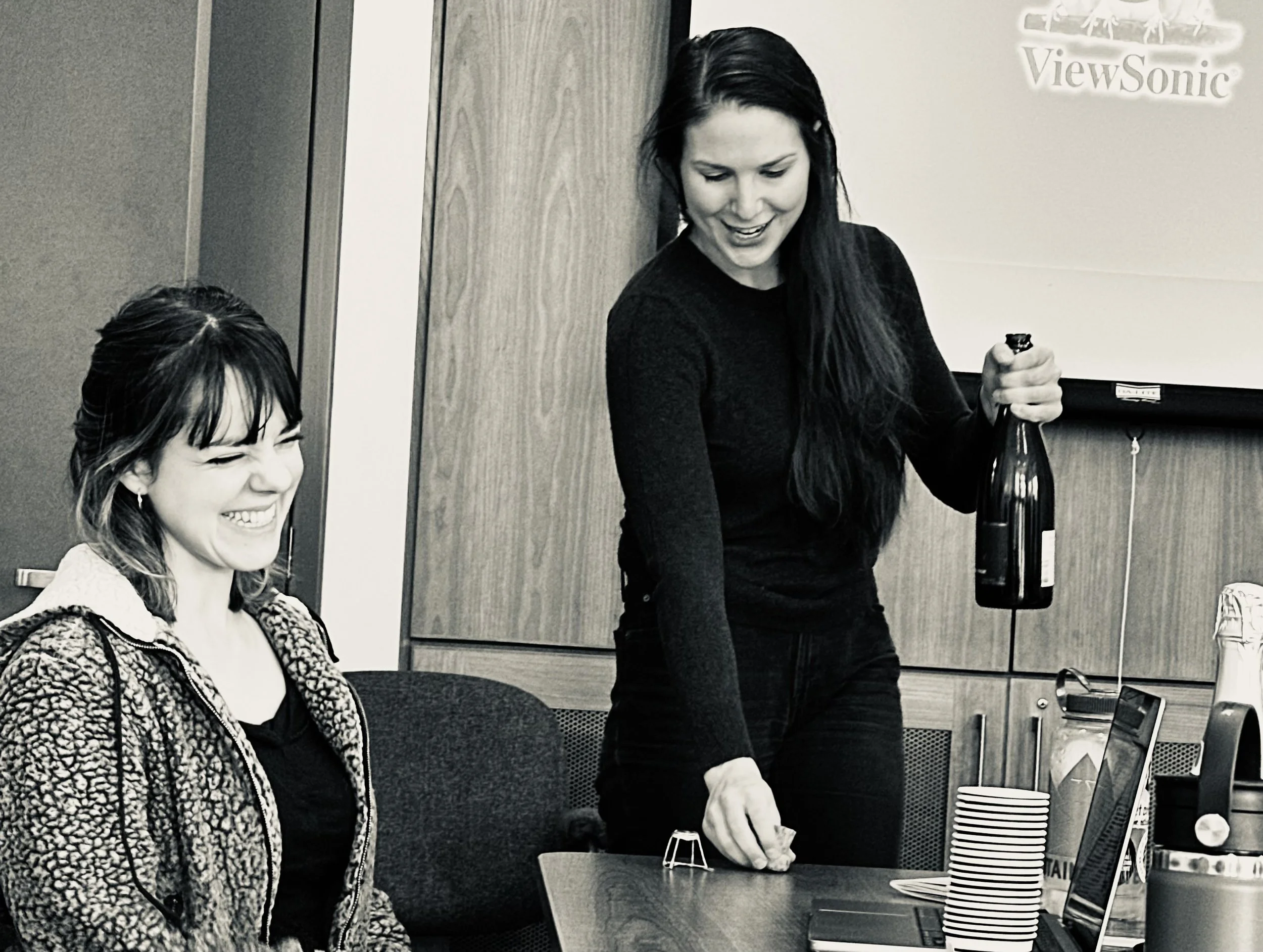 Above: Postdoctoral fellow, Dr. Amanda Cicchino (right), came prepared to celebrate Dr. Hale’s exciting news in style!